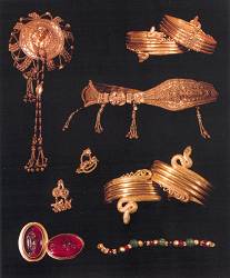 | Pfrommer, joined by Jack Ogden, an English expert on ancient jewelry, established that all the pieces in the collection were of Hellenistic Egyptian workmanship, circa 350 B.C. Pfrommer not only proves this in GREEK GOLD FROM HELLENISTIC EGYPT, but takes the reader on a journey through three centuries ranging from the empire-building Alexander to the beguilingly ambitious Cleopatra VII. A collection of "such importance raises many questions, particularly what is it and where did it come from," writes Pfrommer. "Was it formerly part of the splendor of a temple, where it perhaps decorated the statue of a goddess? Were the golden hairnet and the shining stephane ornaments for the hair of a priestess? Were the images of deities symbols of piety, or were they symbols of wealth? Were the delicate hoop earrings and the coiled snake amulets and bracelets affectionate gifts to a mother or sister, or were they intended to adorn her on her last journey-- to the funeral pyre--or to comfort her with earthly riches in the tomb? "Could the jewelry have been worn at royal festivities to glorify the monarchy? Or could these pieces have been symbolic of the increasing wealth of a city on the rise? Is the treasure perhaps the last vestige of a tragedy? Was the jewelry worn by a victim of war or plunder or death? Did the onetime owner hide the gold so well that its whereabouts remained unknown after her demise? Is it a modern assemblage or an ancient treasure? Was it chance that restored the golden treasure to modern wonder--and to all the questions and close examination?" Pfrommer answers these and other related questions in his smoothly written, erudite and copiously illustrated book (34 color & 41 b&w plates). In a mere 64 pages of text, he not only delivers a lesson in history and art, but plays the detective. In all, it's a remarkable performance on his part, one that will captivate even those with just a passing interest in antique jewelry. Published by Getty Publications, 1200 Getty Center Drive, #500, L.A., CA. 90049-1682. Ppbk. $17.50; call (310) 440-6795 or visit www.getty.edu |